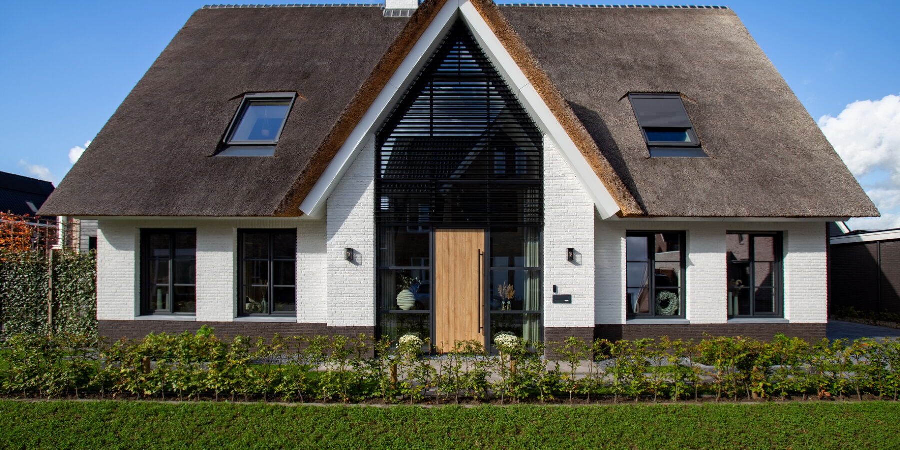 De royale entree is voorzien van een grote glaspartij met aluminium louvrepanelen en is hiermee een echte eyecatcher. De grote glaspartijen in de gevels en erker zorgen voor een zee aan licht in de woning.