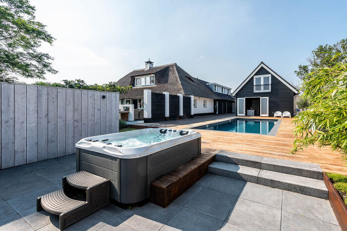 Deze exclusieve modern landelijke villa is gerealiseerd op een perceel van ruim 51oo m². En dat op een locatie met in de achtertuin een schilderachtig uitzicht op de molens van Kinderdijk, die tot het Werelderfgoed behoren. De woning, samen met het bijgebouw en verwarmd zwembad vormen een prachtig geheel met de tuin.