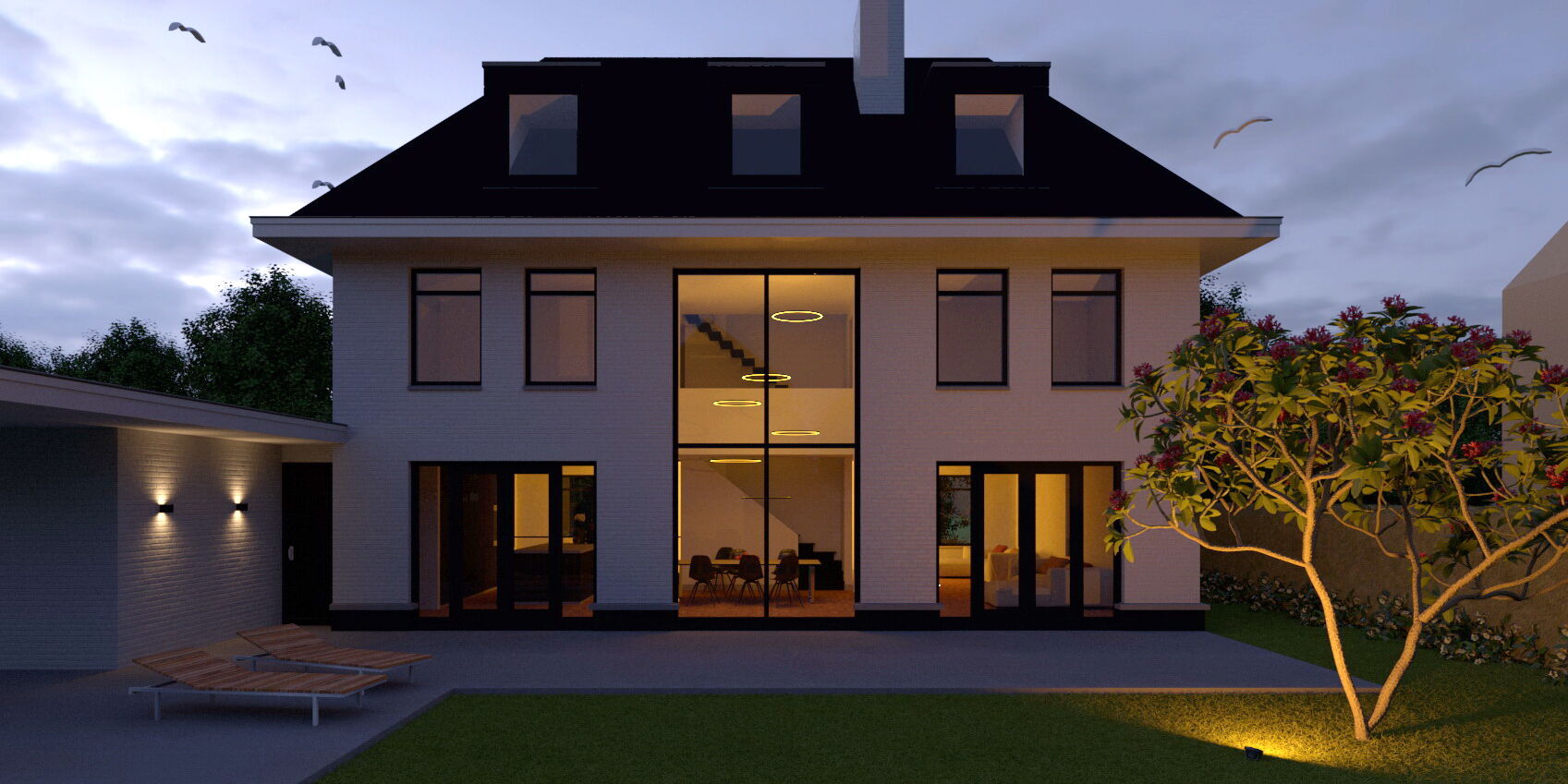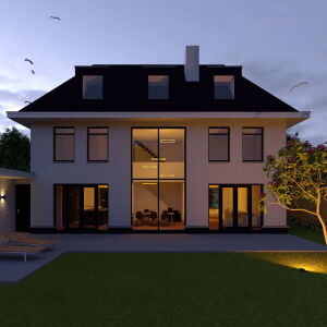 Mede door de hoogte krijgt de woning haar deftige en royale uitstraling. Daarnaast heeft de woning precies in het midden de voordeur met daaromheen symmetrische ramen. De gevel wordt uitgevoerd in gekeimd metselwerk in wildverband, houten kozijnen en hardstenen dorpels. De achterzijde van de gevel bestaat uit veel glas, zodat een zee aan licht de woning binnenvalt en de bewoners kunnen genieten van een weids uitzicht naar buiten.