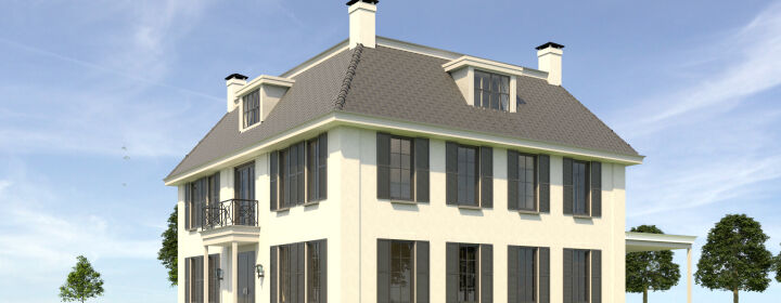 - Nieuwbouw herenhuis - Een herenhuis is een woning die statigheid en luxe ademt. Dat geldt dan ook zeker voor deze villa met royale veranda. Dit statige herenhuis in de omgeving van Wassenaar bestaat uit twee volledige woonlagen en een royale zolder. Het ontwerp wordt gekenmerkt door de hoge gootlijn en de hoge plafonds.