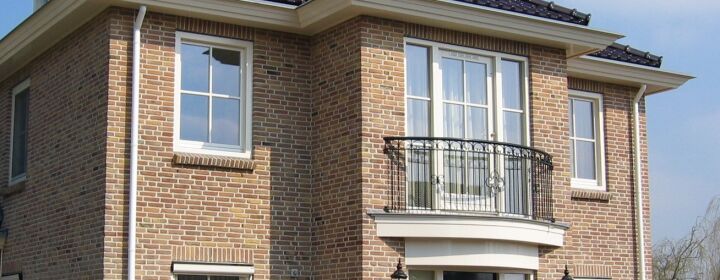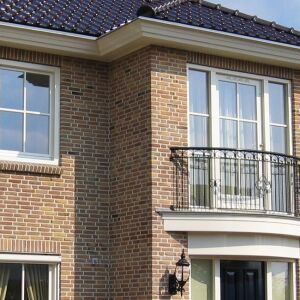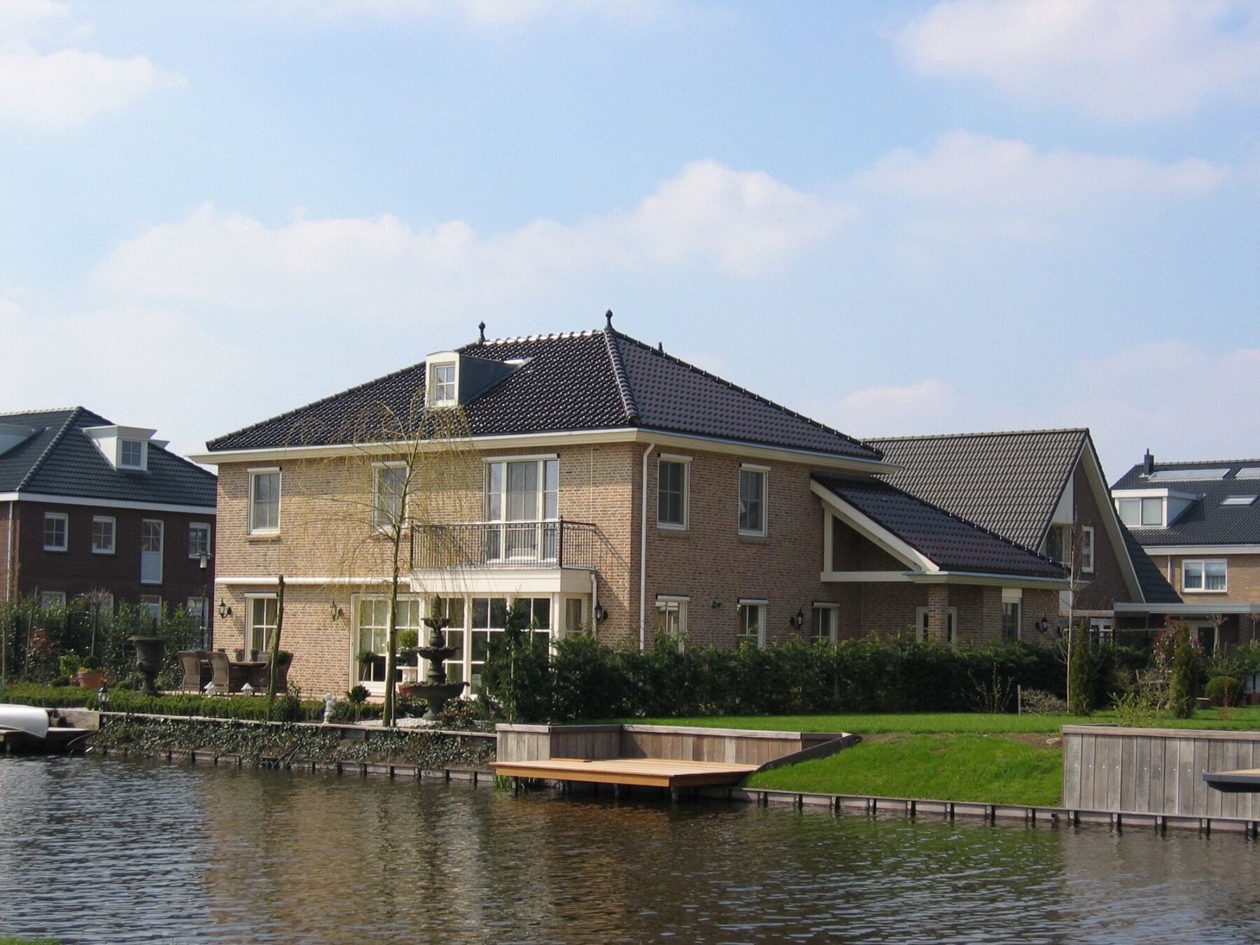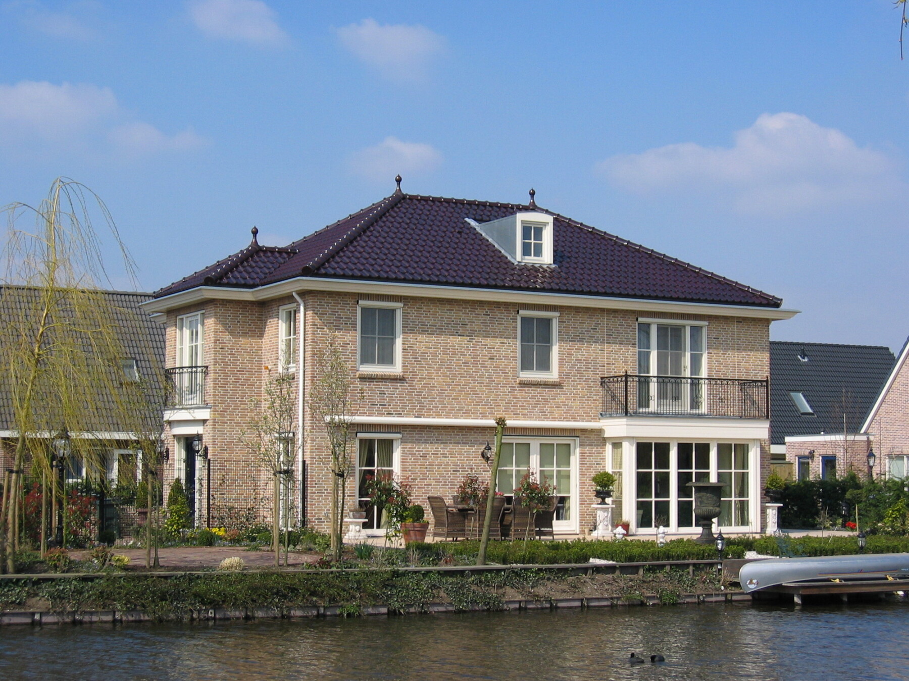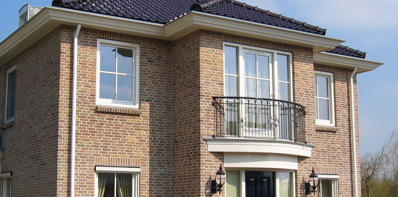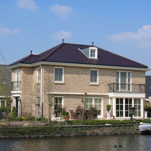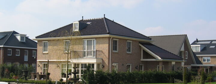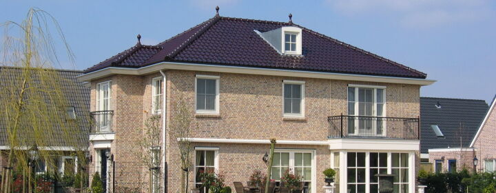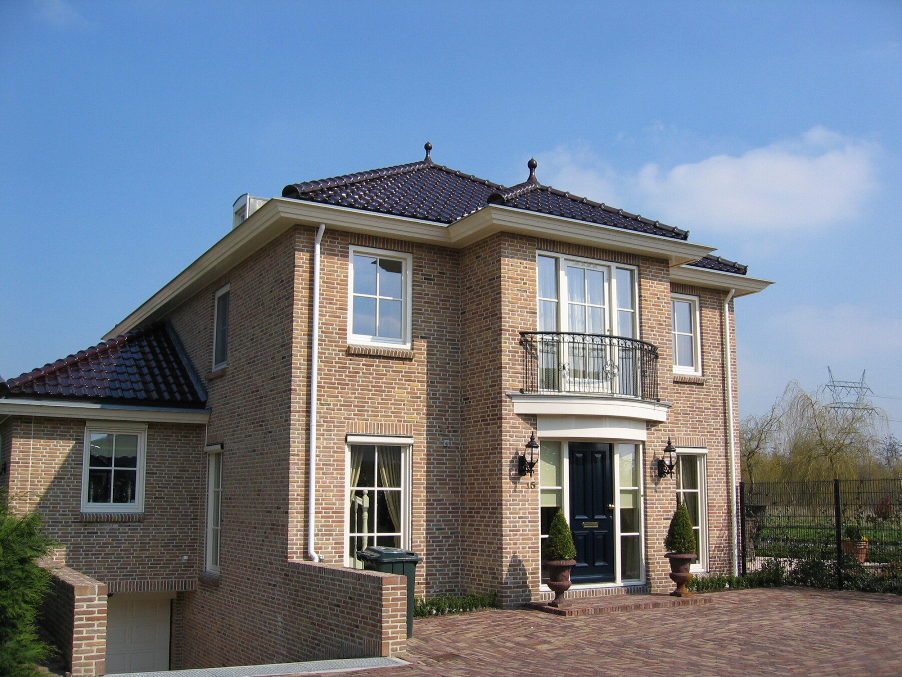 De woning is uitgevoerd in een mooie gemêleerde handvorm steen en de goten van deze villa zijn groot en rijk gedetailleerd. Het dak is bedekt met een zwarte geglazuurde dakpan. De verschillende dakkapellen zijn bekleed met zink, dit geeft een mooi contrast met de pannen.