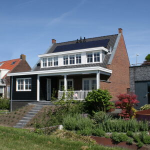 De klassieke woning wordt gekenmerkt door de statige voordeur met bordes in het midden van de gevel. Daarnaast versterken de rood gemêleerde baksteen en het houtwerk het krachtige karakter van deze typisch Nederlandse stijl.