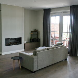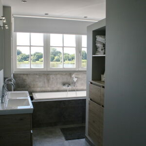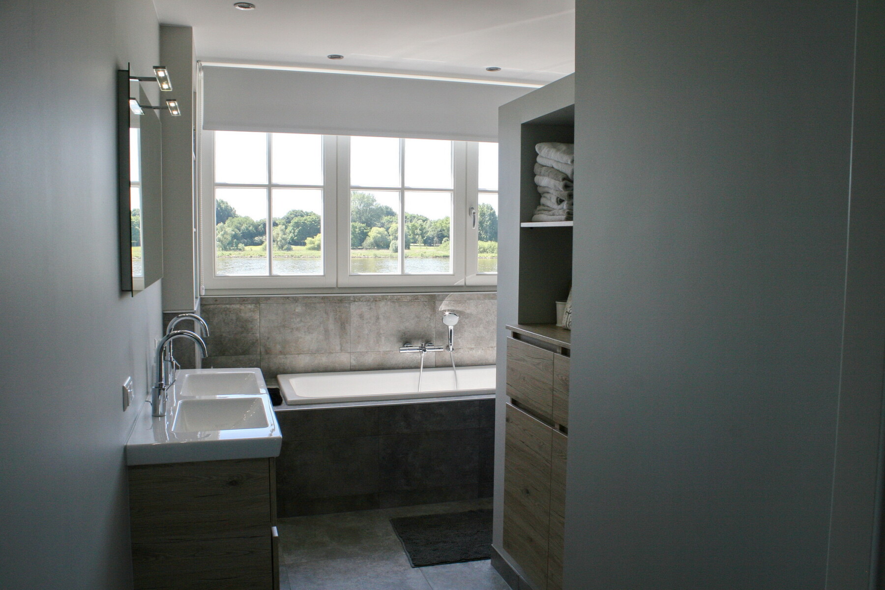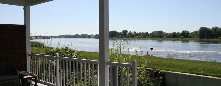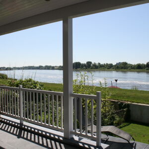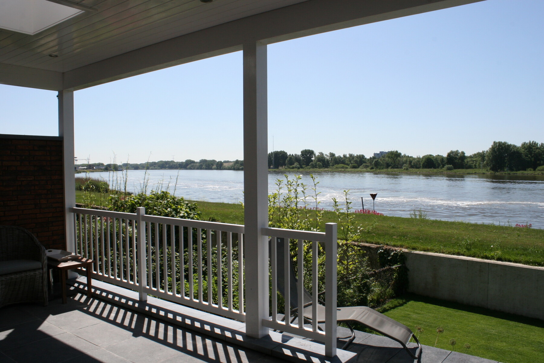 De woning is grotendeels boven het dijkniveau gesitueerd waardoor er vanuit de woonkamer en de ruime eetkeuken uitzicht is op de achtergelegen rivier. Aan de achterzijde is een veranda met buitenhaard ontworpen waar de familie optimaal kan genieten van het buitenleven.