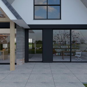 Naast de modern landelijke woning is een ruime garage ontworpen.