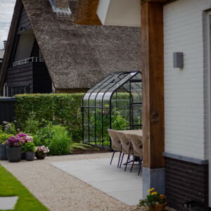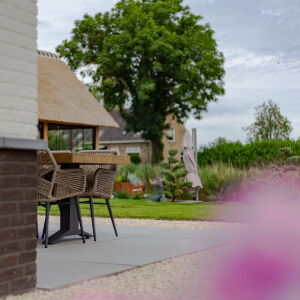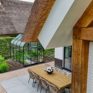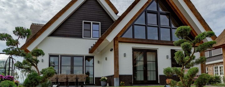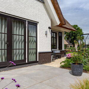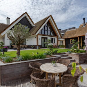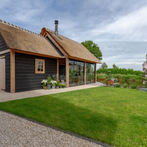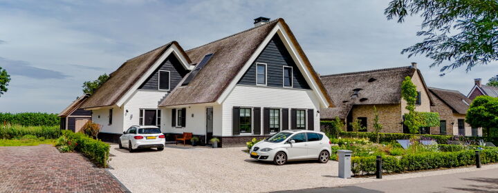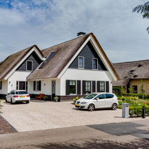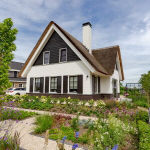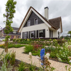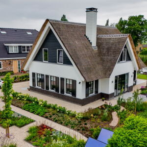 De modern landelijke woning heeft een rieten kap, wit gekeimde gevels en Belgisch hardstenen dorpels, dit geeft de woning een landelijke uitstraling welke geheel past in de omgeving. De woning is tevens levensloopbestendig ontworpen. Vanuit de royale hal met vide hebben de bewoners direct toegang tot een slaapkamer met badkamer op de begane grond.