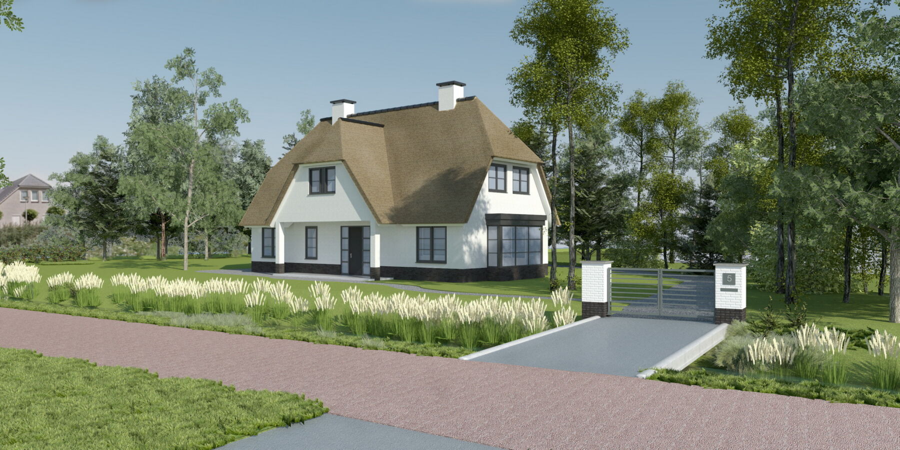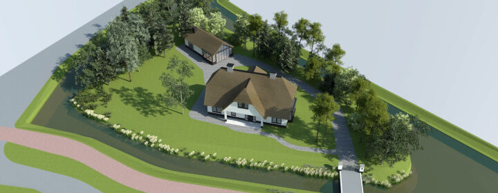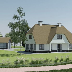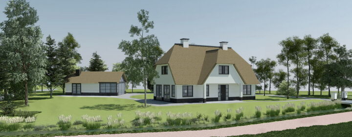 Op deze locatie hebben wij een landelijke rietgedekte woning met wit gestuukte gevels ontworpen. Dit geeft een goed beeld van de talloze mogelijkheden van deze kavel. Graag gaan wij dan ook met u aan tafel om uw wensen en ideeën te bespreken om een ontwerp op maat te maken. Neemt u een kijkje in ons zeer diverse portfolio om inspiratie op te doen.