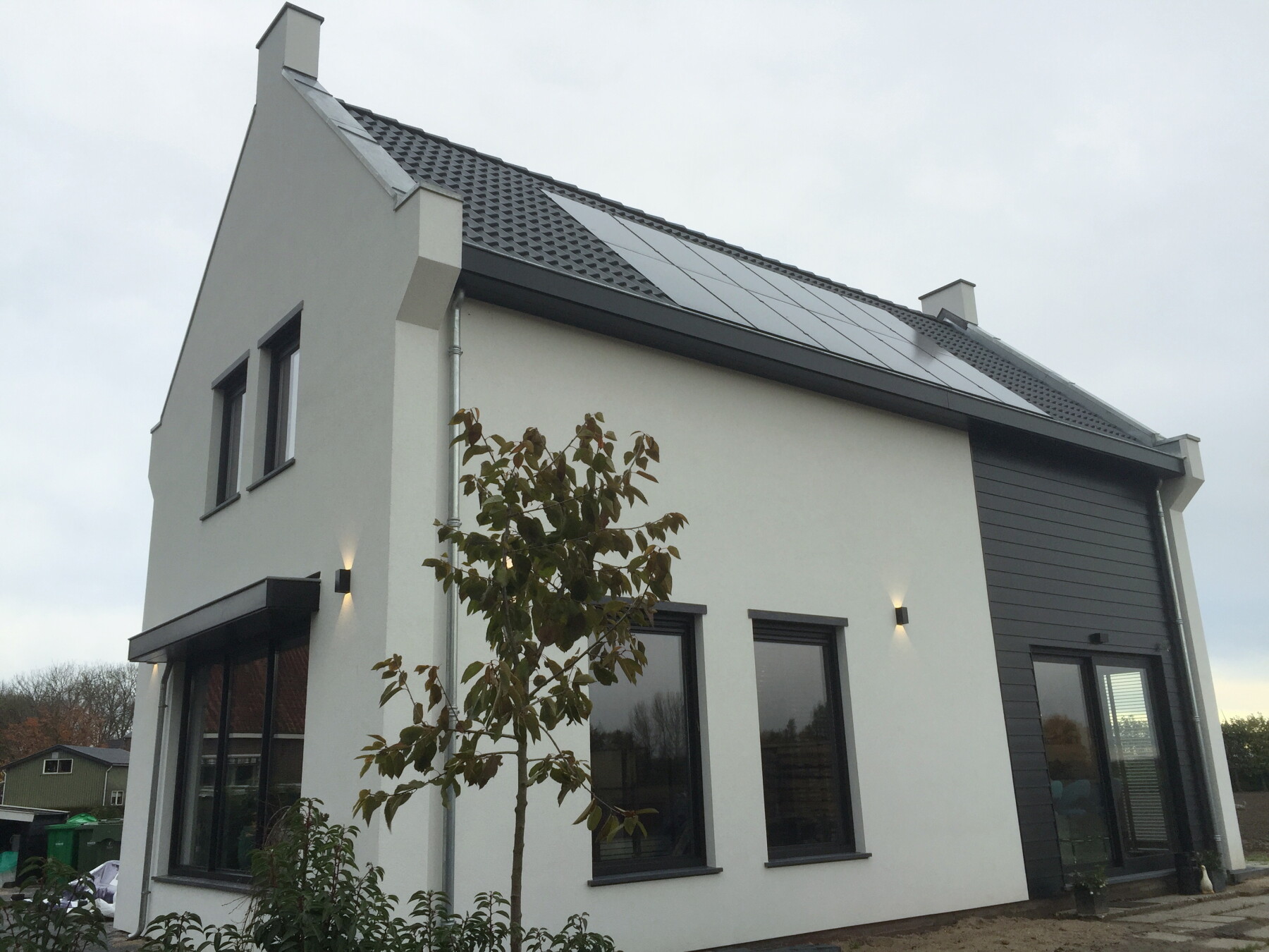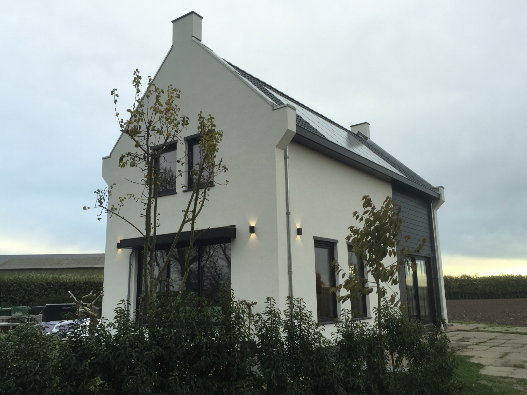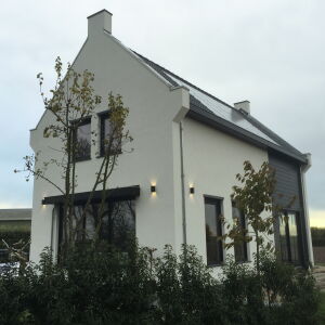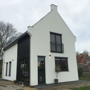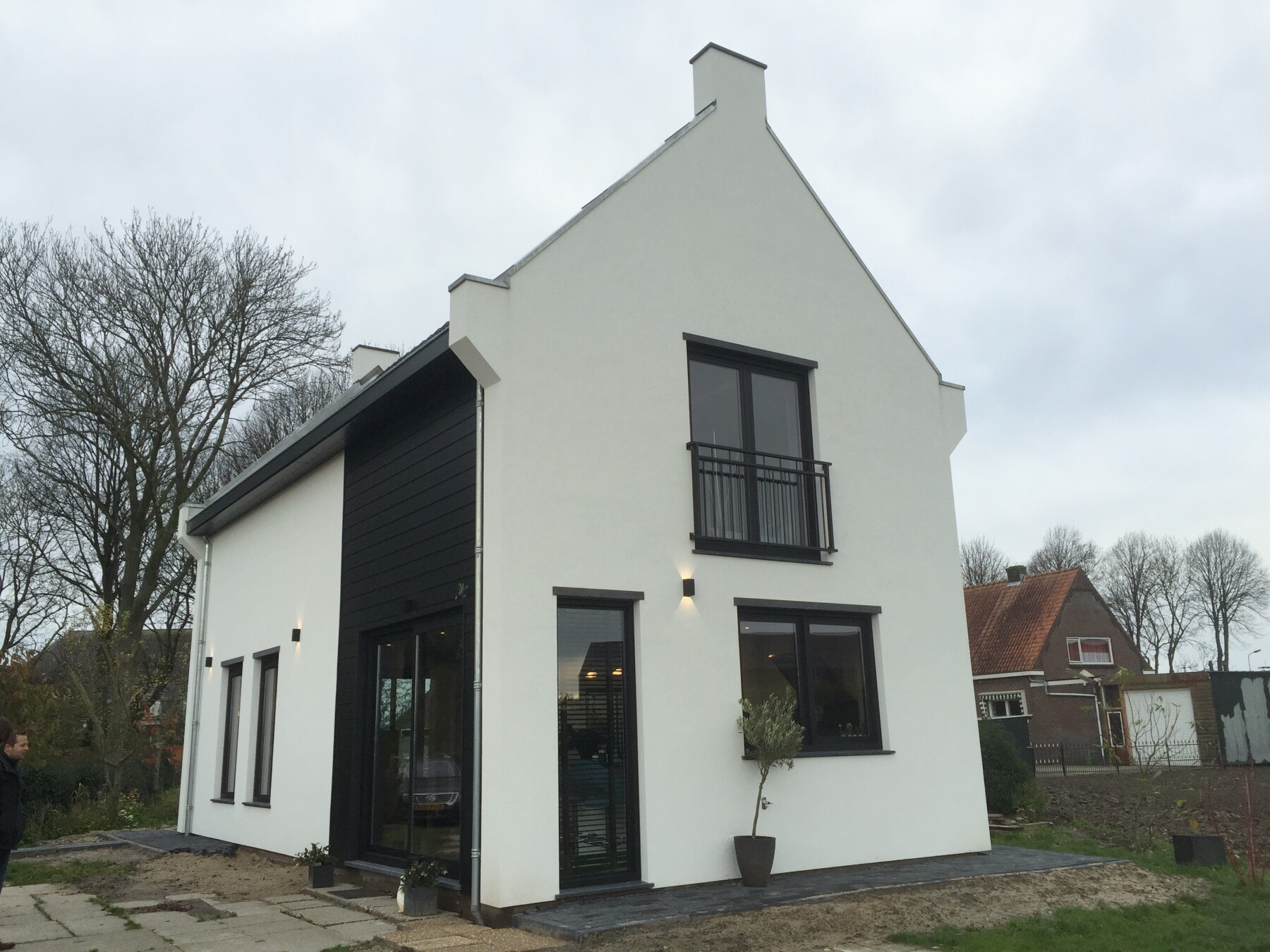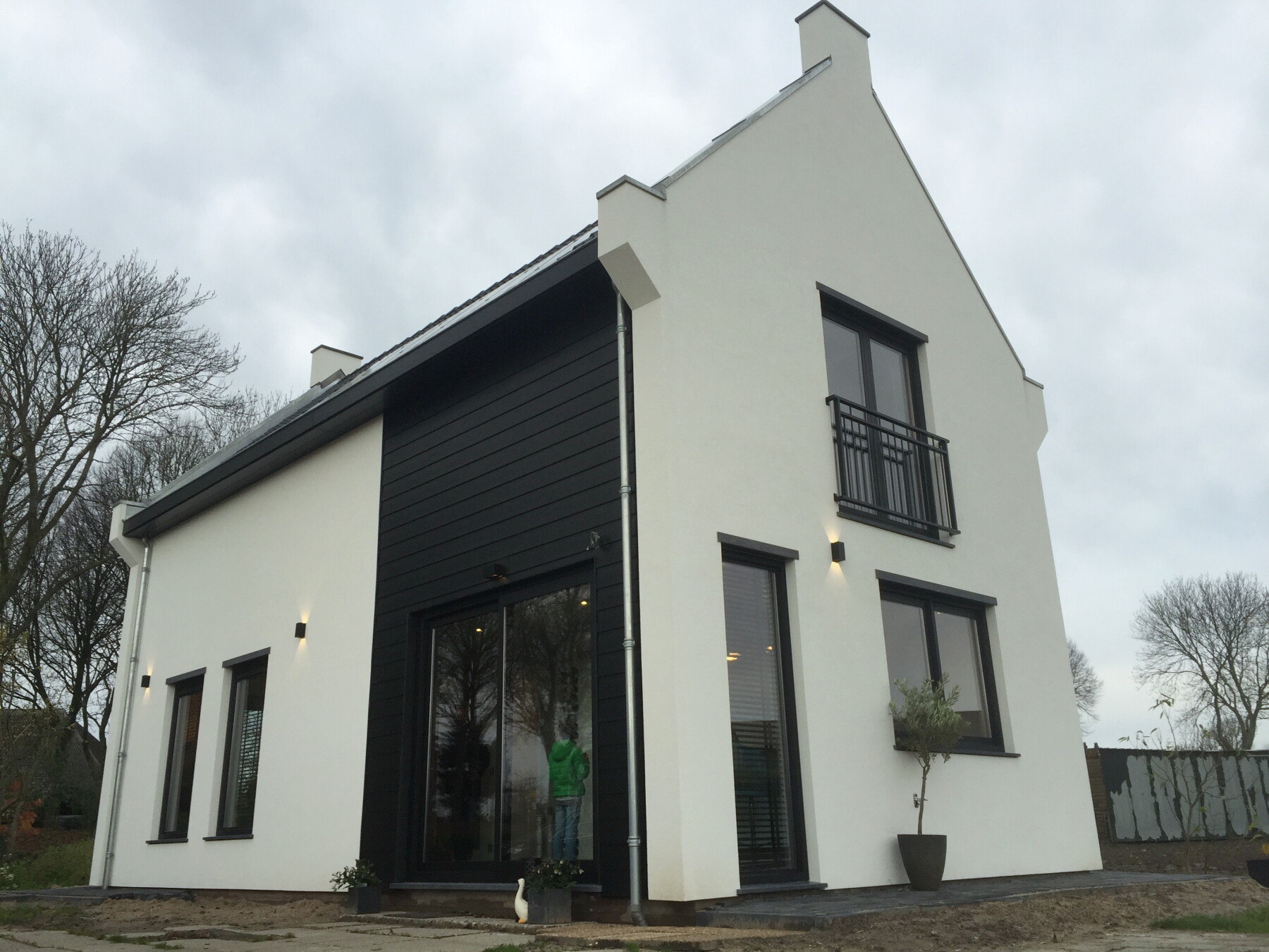 - Nieuwbouw landelijke woning - Deze landelijke woning is gesitueerd in het gehucht Mookhoek in de gemeente Strijen. De woning wordt gekenmerkt door wit stucwerk in combinatie zwart potdekselwerk. Hiermee heeft de woning de gewenste klassieke uitstraling welke geheel past in de omgeving.