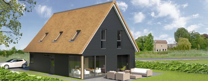 - Nieuwbouw rietgedekte woning - Voor Welstand Bouw hebben wij deze schuurwoning ontworpen op locatie ‘De Meander van Souburgh’ in Alblasserdam. De locatie gelegen aan de Alblas kenmerkt zich door weidse uitzichten, groene omgeving en veel ruimte.