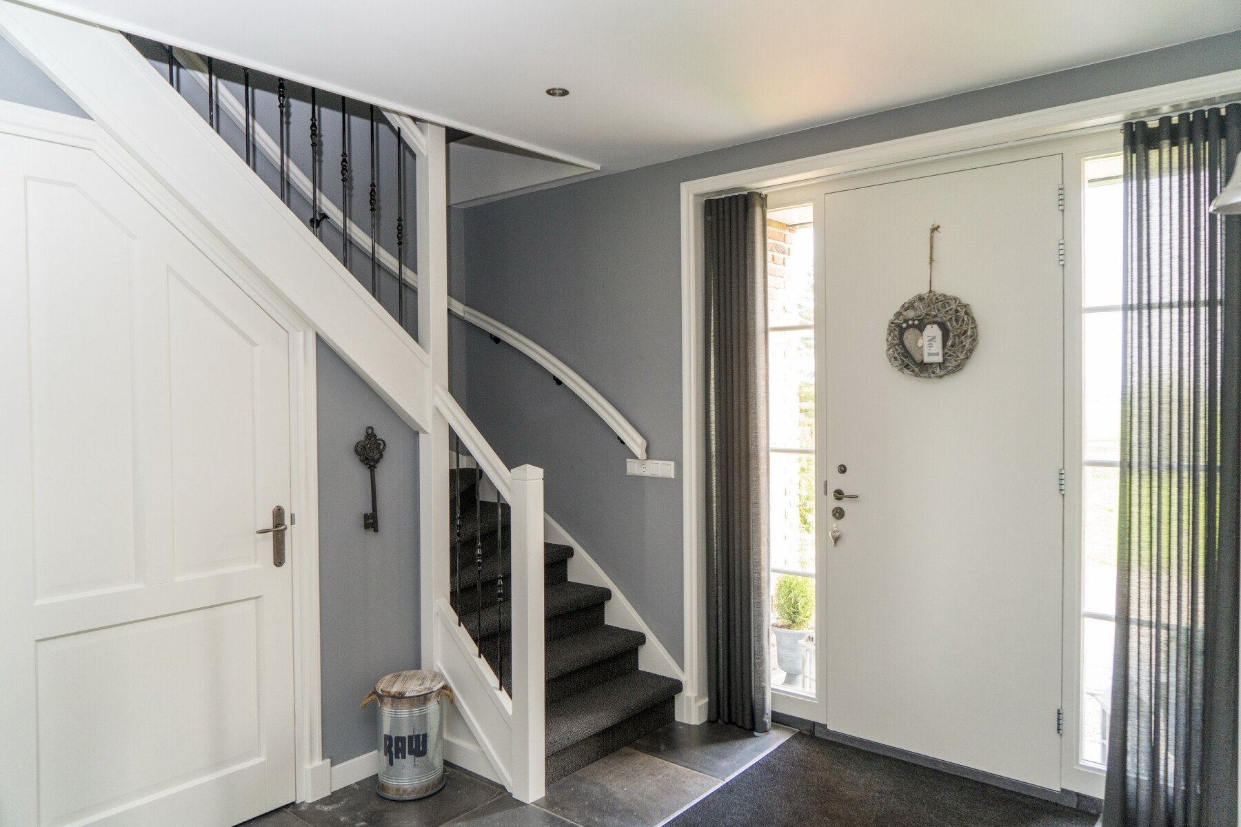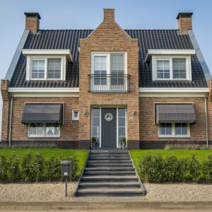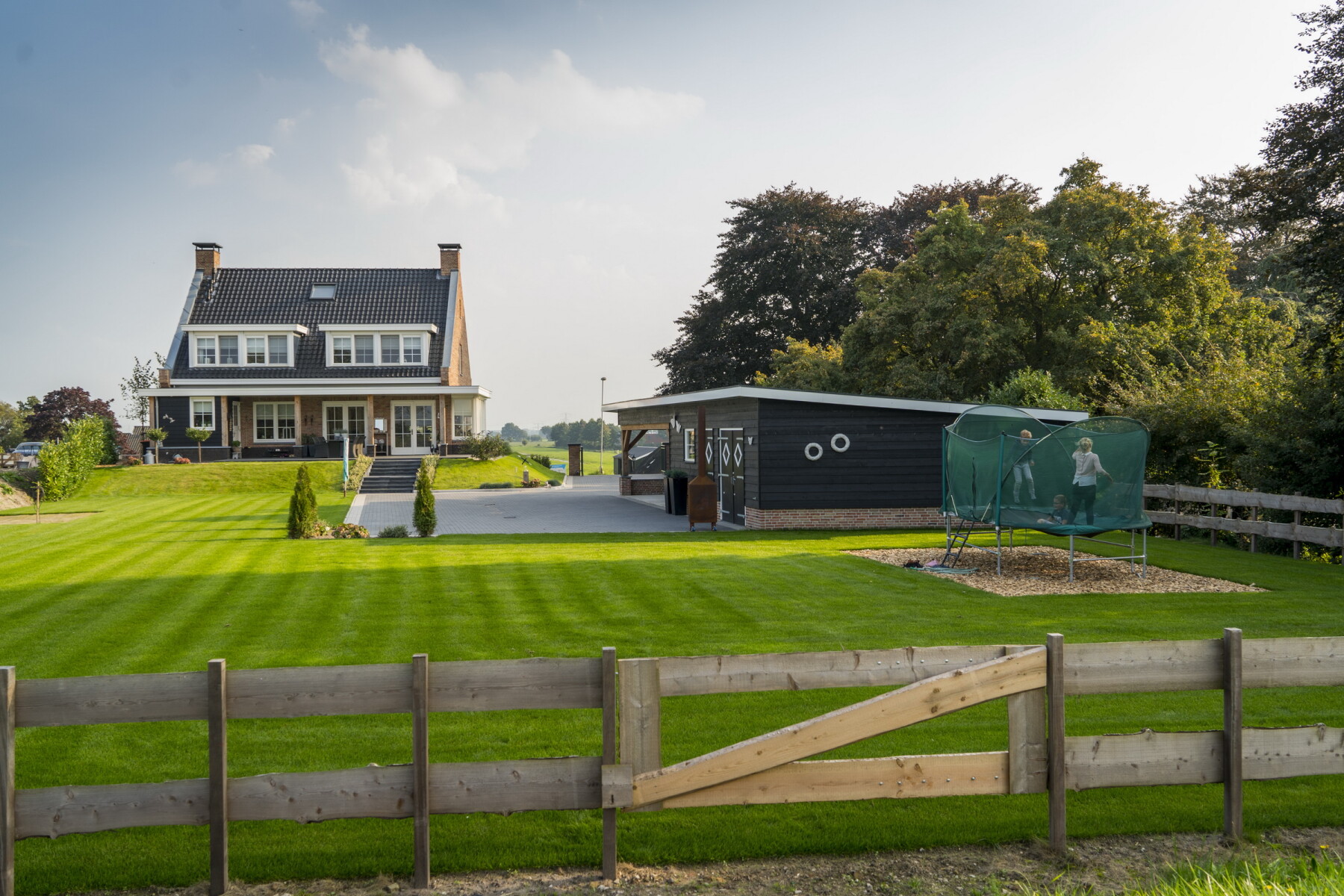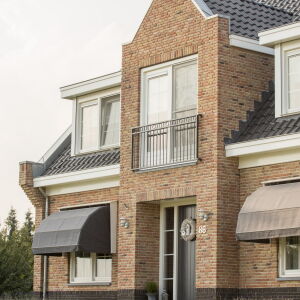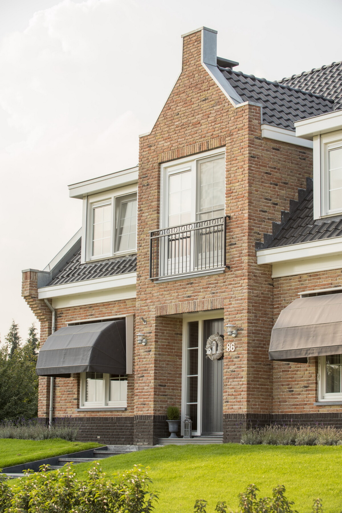 Het ontwerp van de gevels is kenmerkend voor een notariswoning. De symmetrische opzet en de statige entree in het midden van de gevel. De uitgekiende details, een krachtige erker welke uitloopt in de veranda geven de woning de gewenste landelijke uitstraling waar onze opdrachtgevers zich in herkennen. Daarnaast versterken de gemêleerde baksteen en het houtwerk het krachtige karakter van deze typisch Nederlandse stijl.