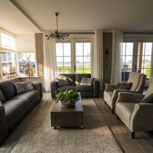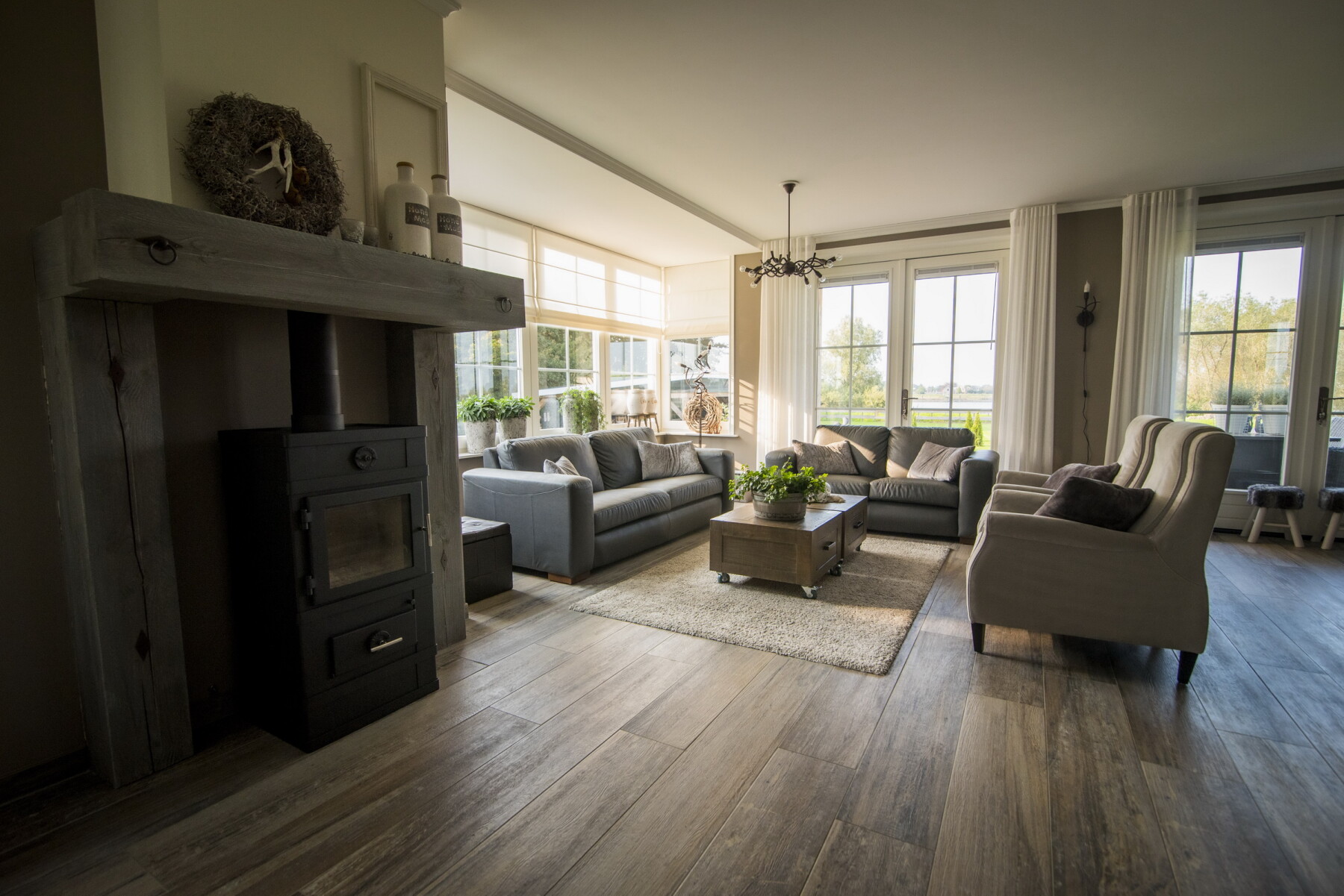 De woning is grotendeels boven het dijkniveau gesitueerd waardoor er vanuit de woonkamer en de ruime eetkeuken uitzicht is op de achtergelegen rivier de Lek. Aan de achterzijde is een veranda ontworpen waar de familie optimaal kan genieten van het buitenleven.