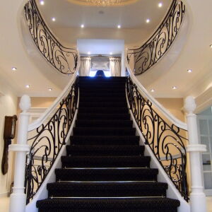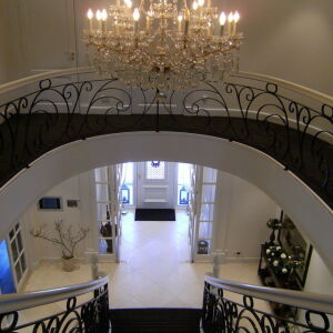 Het huis kent vier woonlagen met in het souterrain een biljartkamer en wijnkelder. Centraal op de benedenverdieping van de woning ligt de imposante trap. Een blikvanger van hout en voorzien