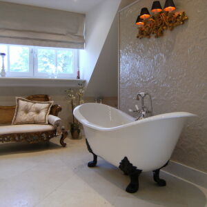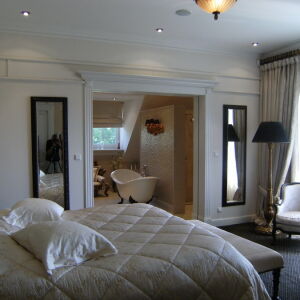 bevinden zich meerdere slaapkamers en de badkamer, die direct vanuit de hoofdslaapkamer is te