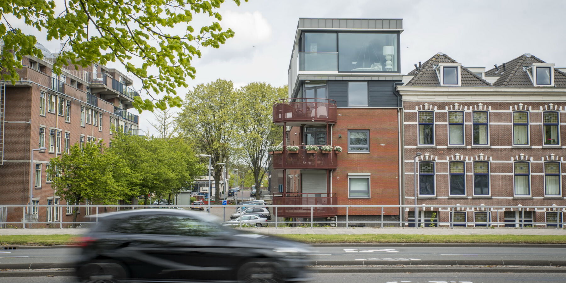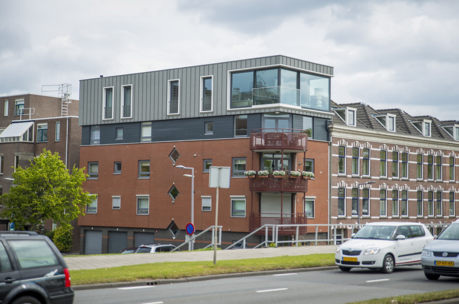 - Dakopbouw penthouse - Bovenop een kleinschalig appartementencomplex met drie wooneenheden is een dakopbouw gerealiseerd in het kader van particulier opdrachtgeverschap. Dankzij zorgvuldig materiaalgebruik is een volledige verdieping bovenop het bestaande gebouw gerealiseerd dat een geheel eigen karakter heeft en zich tegelijkertijd voegt in haar omgeving.