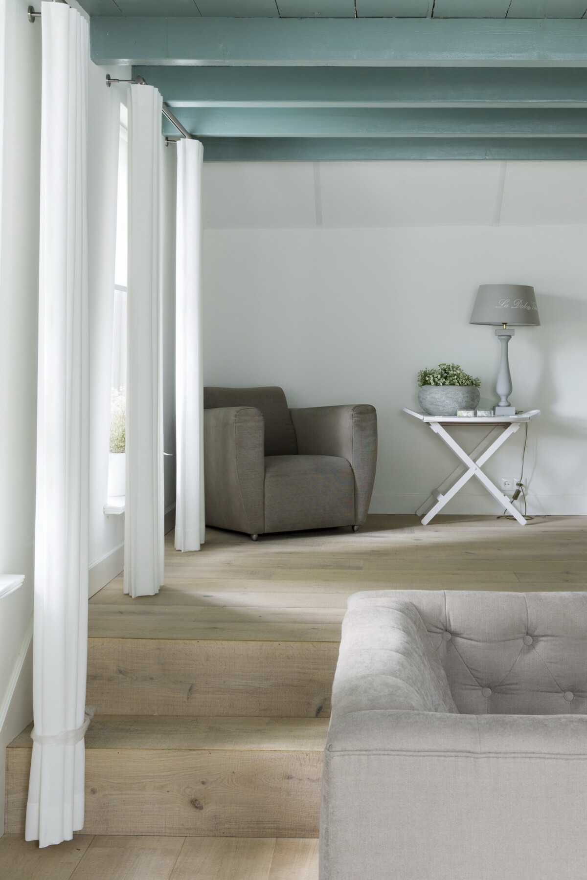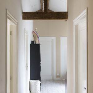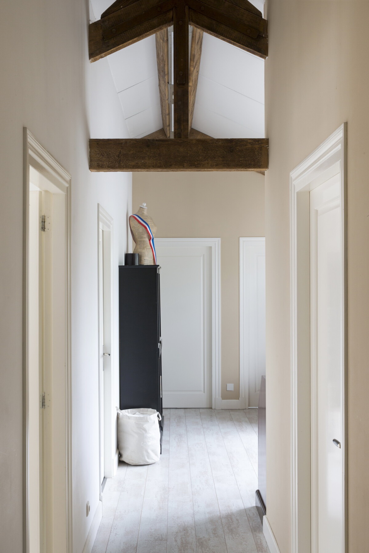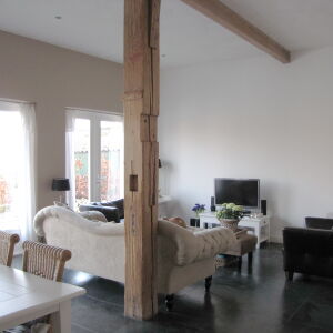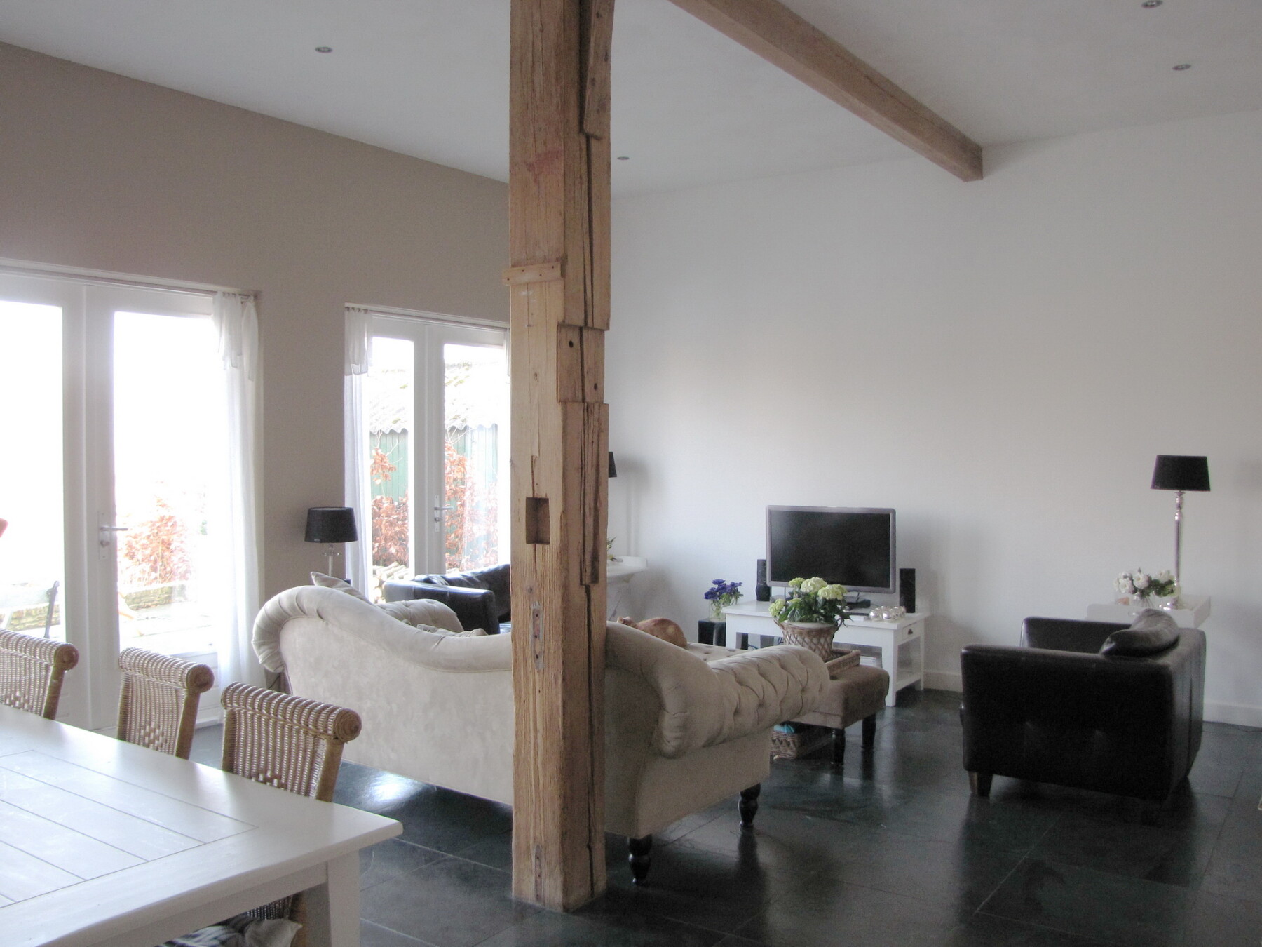 Bij het maken van het ontwerp was de oude gebintconstructie het uitgangspunt en zijn de authentieke details gerespecteerd. Historische elementen worden op deze manier zo min mogelijk aangetast. In deze voormalige stal is op de begane grond de woonkamer en een garage/berging gerealiseerd. Op de voormalige hooizolder zijn een 5 tal slaapkamers en een badkamer gesitueerd.