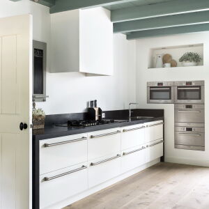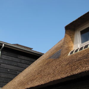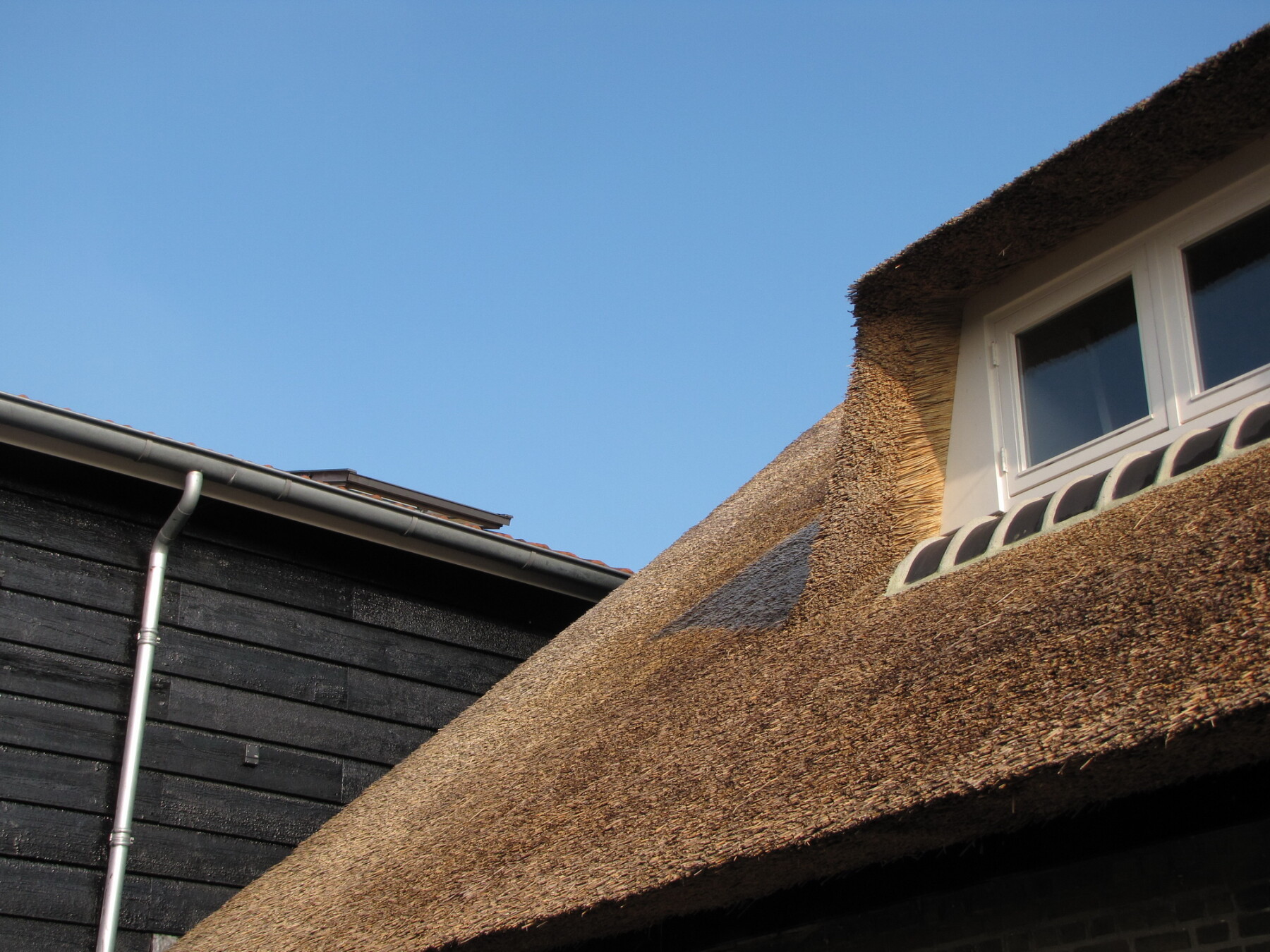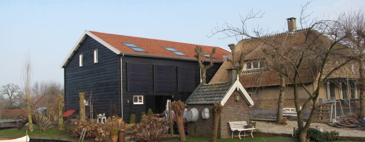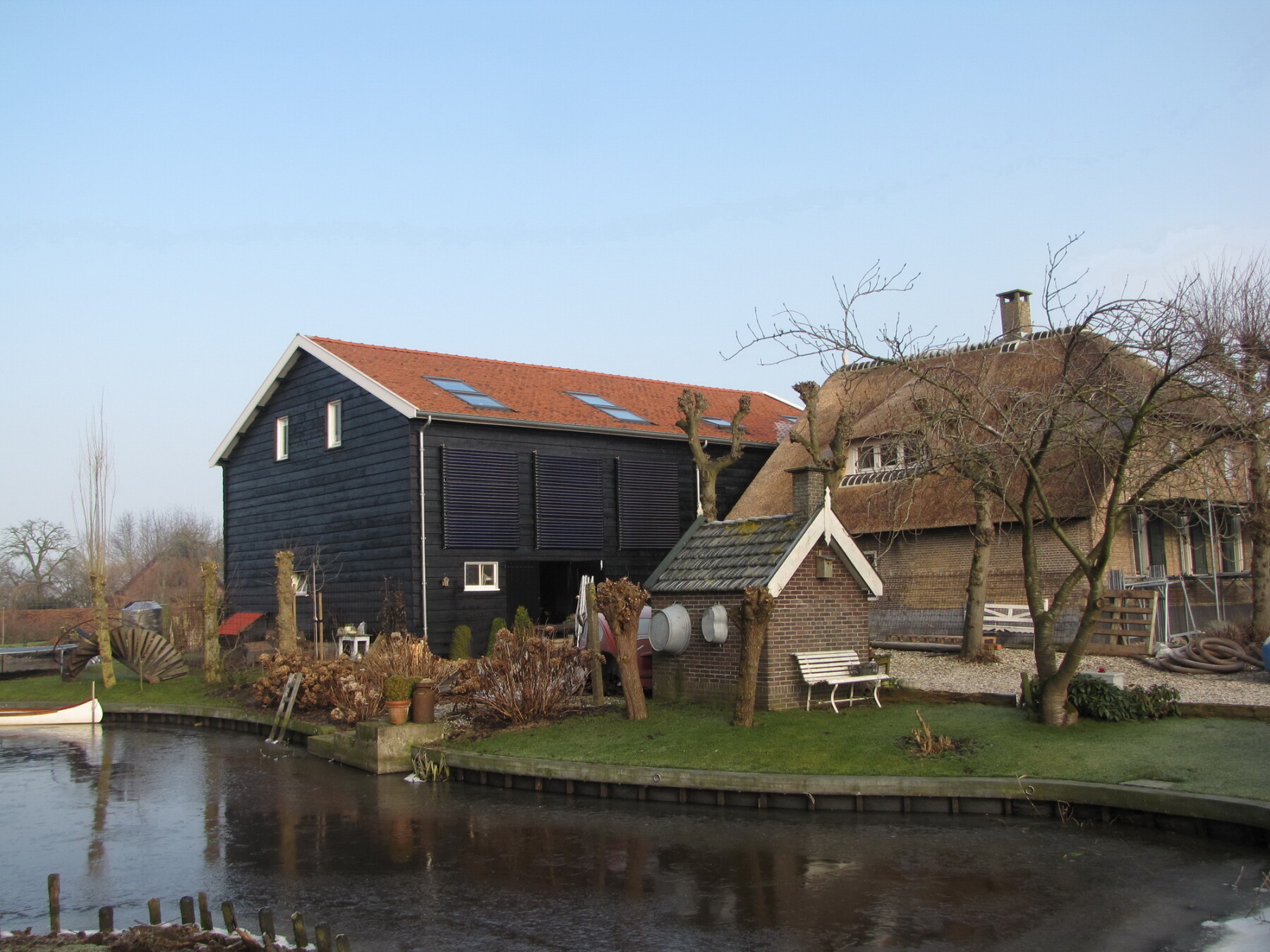 Als ‘verrassing’ is op de verdieping een loggia ontworpen, welke een prachtig uitzicht biedt op de achtergelegen polder. Dat historie en huidige technieken goed samen kunnen gaan heeft onze opdrachtgever wel bewezen. Tegen de gevel van de schuur zijn zonnecollectoren gemonteerd welke ‘wegvallen’ op het achtergelegen potdekselwerk. Restauratie en duurzaam bouwen gaan hier hand in hand!