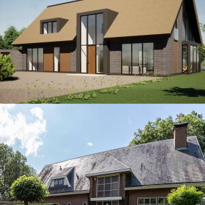 De woning is volledig verduurzaamd en heeft een eigentijdse architectuur afgestemd op de wensen van onze opdrachtgever. Daarnaast wordt de woning aan de buitenzijde volledig geïsoleerd en voorzien van een warmtepompinstallatie.