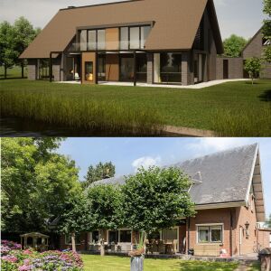 - Transformatie naar landelijke moderne villa – Van een gedateerde jaren 80 villa naar een landelijk moderne villa. De woning ondergaat een ware transformatie. We kunnen wel stellen dat het één van onze specialisme is om een bestaande woning te verbouwen en transformeren naar een duurzame woning met een eigentijdse architectuur.