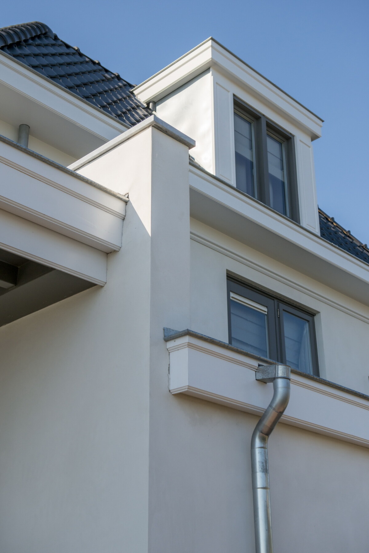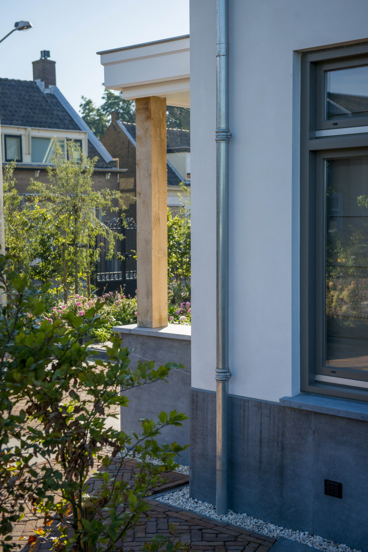 Ook sluit het ontwerp in zijn verschijningsvorm aan bij de statige herenhuizen die zich verderop aan de dijk bevinden.