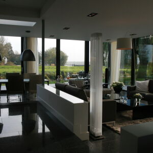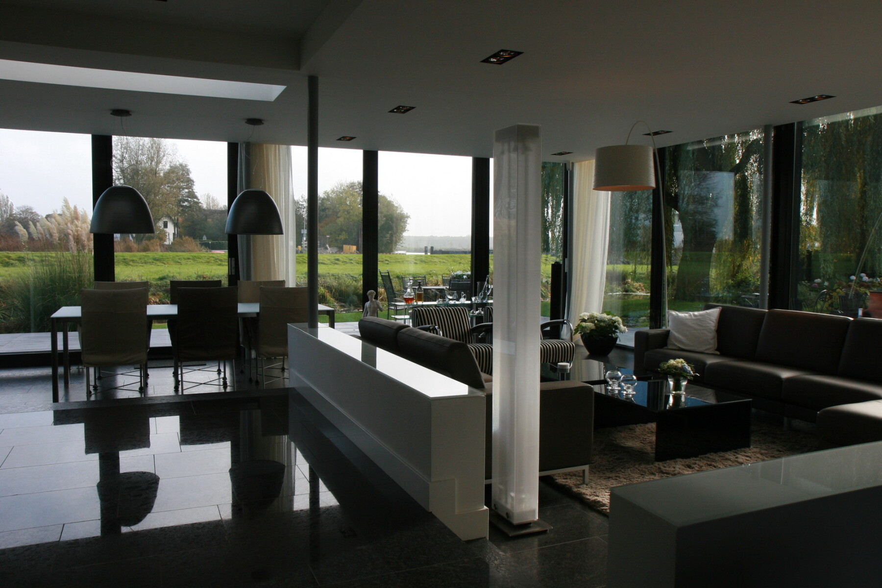 Heel veel licht en duurzame materialen verbinden de verschillende gedeelten tot een grote harmonieuze leefkamer, waar werkelijk in alle hoeken en gaten genoten wordt.