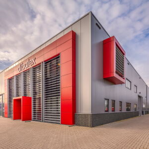 - Nieuwbouw bedrijfspand Dordrecht - Voor Dibalex verzorgden wij het ontwerp en de directievoering van het nieuwe en duurzame bedrijfspand met kantoor en werkplaats. De kleuren van het nieuwe bedrijfspand met kantoor zijn afgestemd op de bedrijfskleuren van Dibalex.