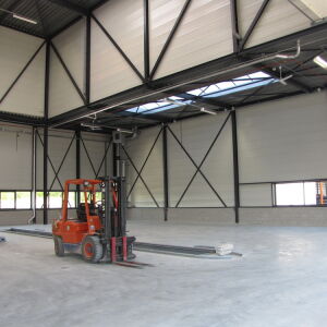 Een modern kantoor van 375 m² met een werkplaats van 735 m² en een overkapping van 1395 m². Verder een wasplaats met tankplaats voor het eigen wagenpark. En dit alles op een prachtige plek met een goede ontsluiting.