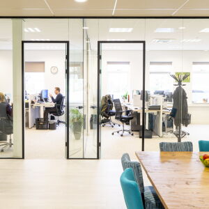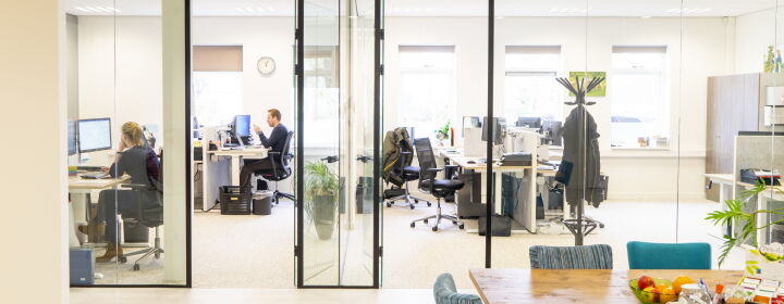 Rondom de kantoorhuiskamer zijn de diverse kantoren, vergaderruimten, toiletten en de keuken gesitueerd. Deze verschillende ruimten zijn van elkaar gescheiden door middel van glazen wanden. Dit geeft het geheel een open karakter en zorgt voor een lichte centrale ruimte. Er gaat immers niets boven natuurlijk daglicht.