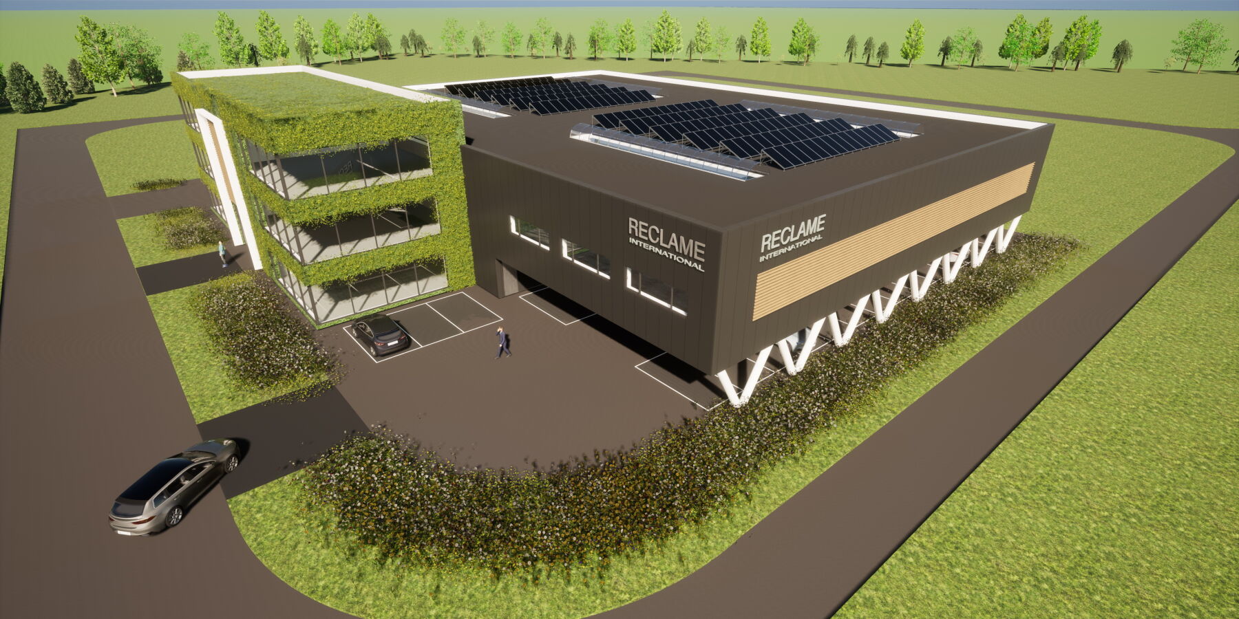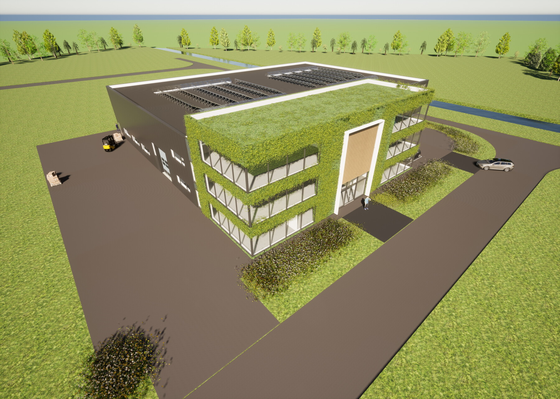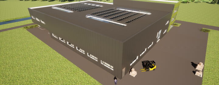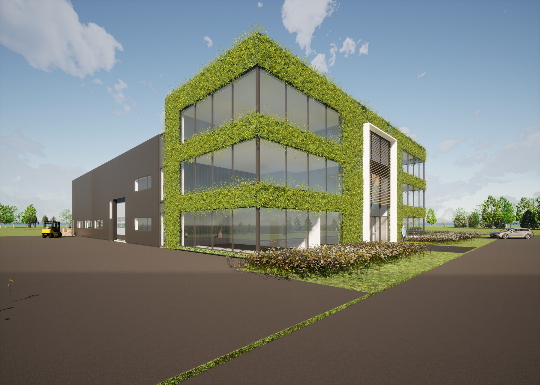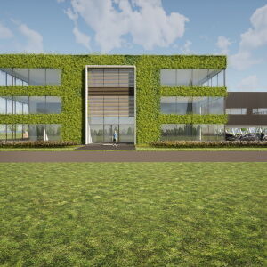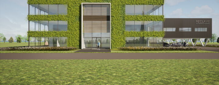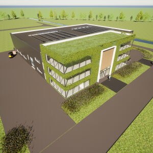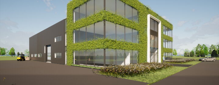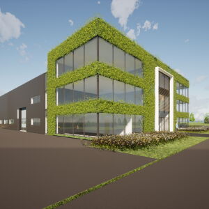 Het zeer duurzame bedrijfspand bestaat uit een kantoor van drie lagen en een bedrijfshal met werkplaats met een totaal BVO van ca. 4.000 m2.