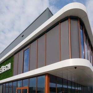 Het ontwerp wordt gekenmerkt door het 'zwevend' volume op de hoek van het gebouw. Dit markeert tevens de entree en genereerd van binnenuit volledig zicht op de productieruimte met de gewenste oppervlakte voor het kantoor. De hoek van het bedrijfspand krijgt hiermee een hoogwaardige uitstraling met veel glas en transparantie. Op de gevel wordt het logo in een groene gevel geïntegreerd voor zichtbaarheid en herkenning.