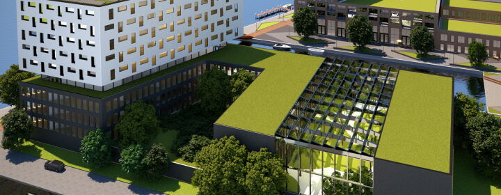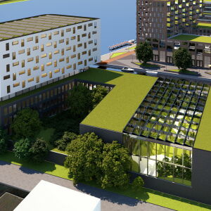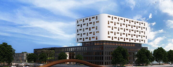 - Nieuwbouw kantoorgebouw - Het zeer duurzame kantoorgebouw bestaat uit 11 bouwlagen met een totaaloppervlakte van 19.000 m². Onder het kantorencomplex is de parkeergarage gesitueerd.