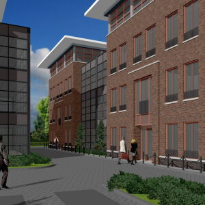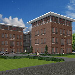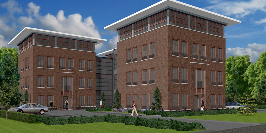 De gevels van de kantoren zijn vervaardigd van een handvorm baksteen in een warme kleur, roodbruin genuanceerd en waarbij de plint uitgevoerd is in een donkere kleur.