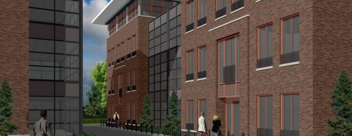 De gevels zijn met zorg gedetailleerd, waarbij het metselwerk uitgevoerd zal gaan worden in doorstrijkmetselwerk en de dorpels van de kozijnen van prefab beton.