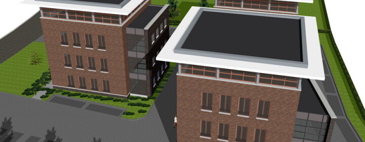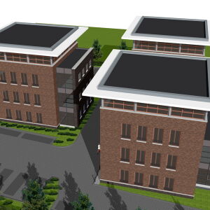 De hoofdvorm van het ontwerp kenmerkt zich in drie clusters, elk met een grondvlak van ca. 150 m2 en opgebouwd in vier bouwlagen.