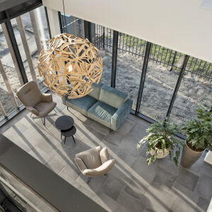Transparantie is een belangrijk uitgangspunt voor onze opdrachtgever wat terug te zien is in het ontwerp. Bij binnenkomst valt meteen de grote vide op en de glazen scheidingswanden tussen de verschillende kantoren en vergaderruimtes. Middels glaspartijen is er vanuit het kantoor ook zicht op de bedrijfshal.