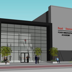Het voormalig stadskantoor wordt volledig getransformeerd tot Food Innovation Academy. Tussen de fabriek van Royal Steensma en de Academy is een loopbrug ontworpen. Ook het bestaande kantoor van Royal Steensma wordt volledig getransformeerd.