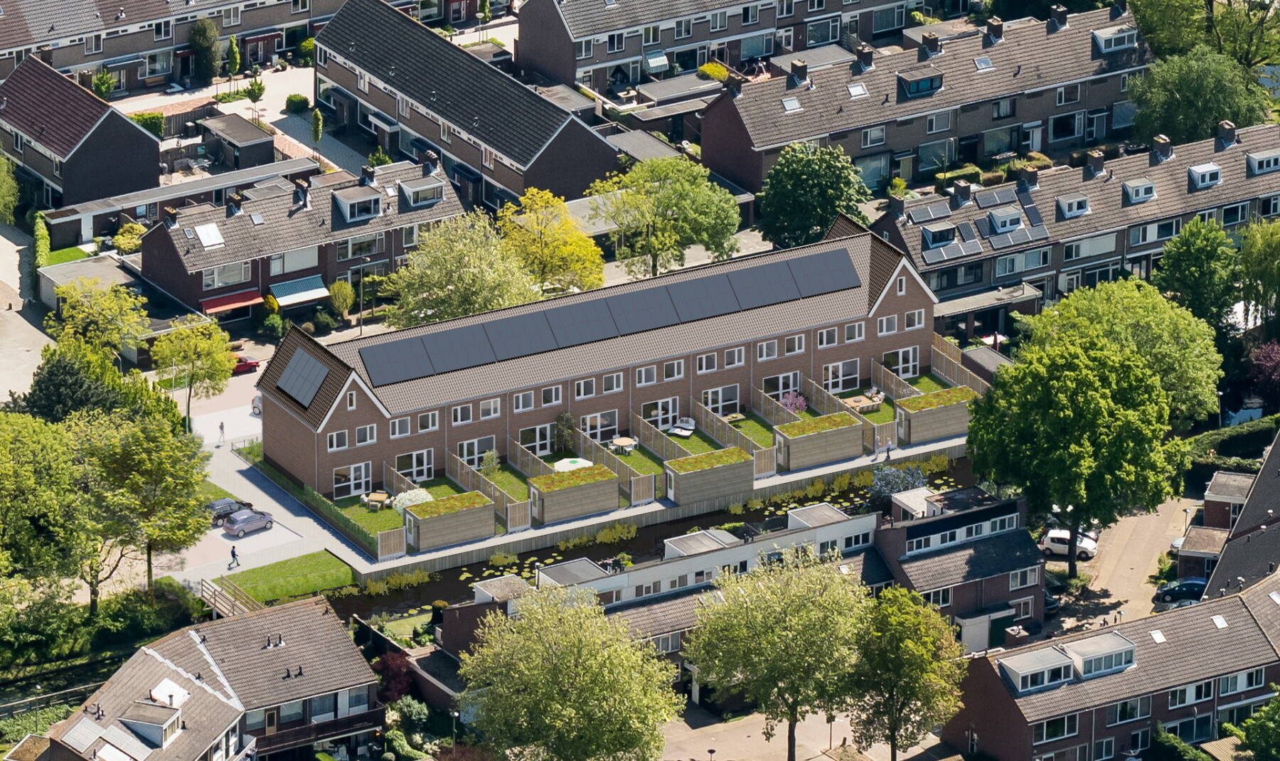 De woningen zijn energieneutraal, van alle gemakken voorzien en hebben een ruime en zonnige tuin.