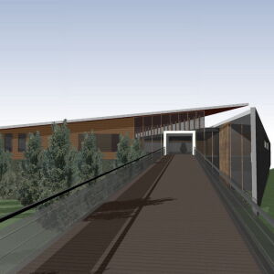 De noordgevel heeft een transparante uitstraling welke de bezoeker, komende uit de buitenruimte een rustige overgang biedt bij het betreden van de binnenruimte. Tevens kan van het zicht op het open rivierenlandschap genoten worden.
