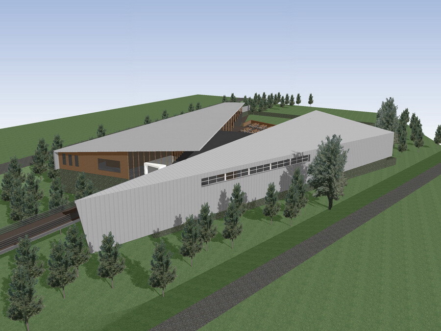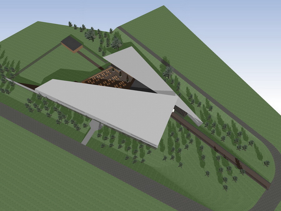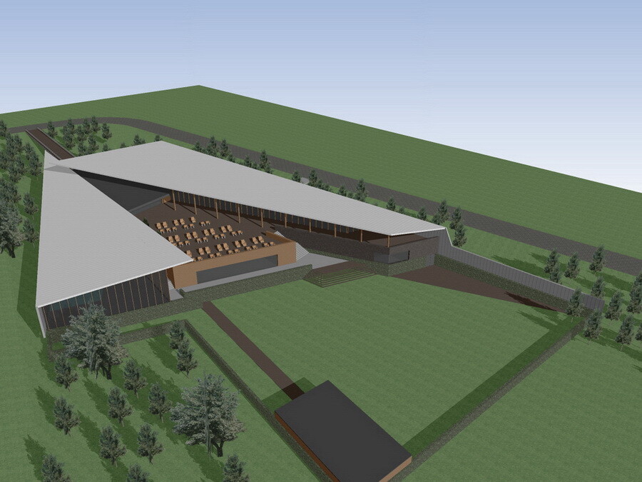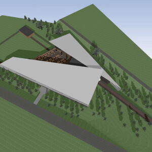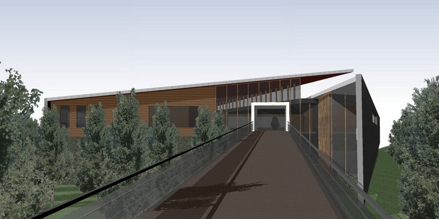 De begane grond sluit naadloos aan in deze groene omgeving door deze volledig te laten begroeien door klimplanten. De bovenbouw contrasteert hiermee en zoekt aansluiting met de lucht.