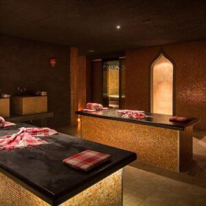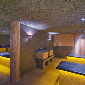 Tevens is er een compleet Oosters badhuis met hamam, een uitgebreide rasul en een ware gletsjergrot.