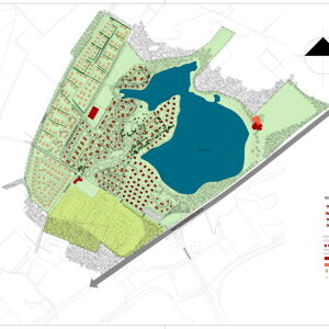 Het masterplan dat we hebben gemaakt voorziet in ca. 200 woningen in 5 verschillende uitvoeringen. Daarnaast is er een recreatiecentrum ontworpen met diverse voorzieningen zoals; receptie, zwembad, horeca, winkel en kantoor.