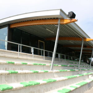 Op de verdieping is de bestuurskamer en kantine gehuisvest waarbij tevens de mogelijkheid is geboden om vanuit de kantine het terras te bezoeken of een plaats op de +/- 400 personen tellende tribune in te nemen.
