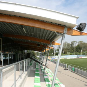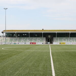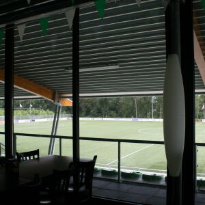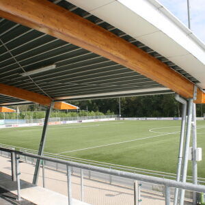 Onder dit dak is tevens een tribune gehuisvest waardoor de bezoeker droog de voetbalactiviteiten kan volgen. Al met al een duurzaame sportaccommodatie van en voor een topclub waar je trots op mag zijn als vereniging!